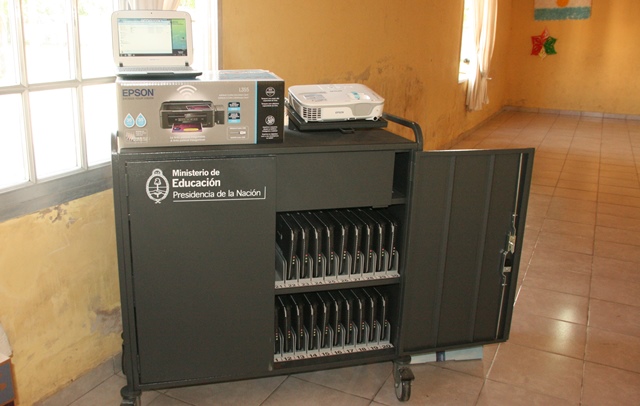 Se trata de una pizarra digital interactiva, un proyector digital, parlantes multimedia, impresora multifunción, un servidor de aula, pendrives, una cámara de fotos digital con capacidad de grabación de video en HD, 30 netbooks y un router inalámbrico para conectar los equipos.