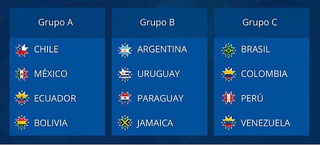 El anfitrión Chile, cabeza de serie del Grupo A, tendrá como rivales a México, Ecuador y Bolivia, mientras que el Grupo C quedó integrado por Brasil, Colombia, Perú y Venezuela.