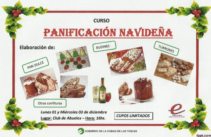 LAS TOSCAS – OFICINA DE EMPLEO – Invitan al curso de panificacion navideña, coordinado por la Oficina de Empleo del Gobierno de la Ciudad de Las Toscas, a cargo de Rosana Escobar.