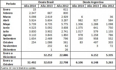 Un informe de la Bolsa de Comercio de Rosario (BCR) destaca que en las plantas argentinas, que se concentran en las terminales portuarias del Gran Rosario, se embarcaron unas 4.090.000 toneladas de aceite de soja de la campaña 2013/14. Brasil, en cambio, exportó unas 1.380.000 toneladas.