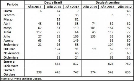 Un informe de la Bolsa de Comercio de Rosario (BCR) destaca que en las plantas argentinas, que se concentran en las terminales portuarias del Gran Rosario, se embarcaron unas 4.090.000 toneladas de aceite de soja de la campaña 2013/14. Brasil, en cambio, exportó unas 1.380.000 toneladas.
