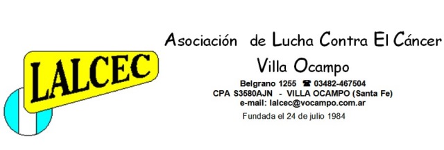 LALCEC VILLA OCAMPO – La Asociación de Lucha Contra El Cáncer Villa Ocampo informa que ya están a la venta los bonos de la 20ª Campaña de Colaboración.