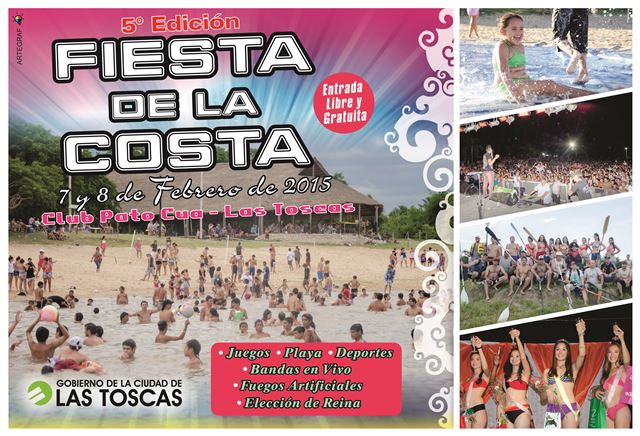 LAS TOSCAS – La Fiesta de la Costa, suspendida por condiciones climáticas, fue reprogramada para los días 7 y 8 de febrero de 2015.PROGRAMA 5° FIESTA DE LA COSTA: