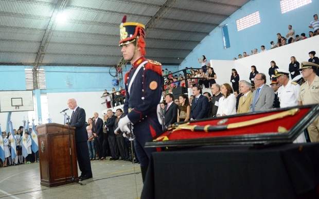 Los festejos convocaron a una gran multitud en la Escuela Particular Incorporada Nº 1083 «Santa Rosa de Viterbo» (por la inclemencias climáticas no se realizó como es habitual en el Campo de la Gloria), donde se exhibió la réplica del sable del general San Martín.