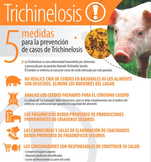 PROVINCIALES – El alerta del Ministerio de Salud fue lanzado en virtud del brote de Trichinelosis informado por la cartera sanitaria de la Provincia de Buenos Aires, por el que estarían siendo afectadas al menos 145 personas residentes de la ciudad bonaerense de Pehuajó, a raíz del consumo de chorizos elaborados con carne procedente de faenas no seguras.El Ministerio de Salud de la provincia de Santa Fe, a través de la Agencia Santafesina de Seguridad Alimentaria, efectuó un llamado a intensificar la vigilancia en Trichinelosis en el territorio santafesino.