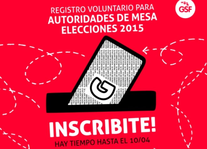ELECCIONES 2015 – El gobierno provincial informa que se encuentra abierta la inscripción al Registro de Voluntarios para ser Autoridades de Mesa en los comicios provinciales de los días 19 de abril y el 14 de junio próximos.Pueden inscribirse todos los hombres y mujeres mayores de 18 años, y la labor será retribuida con 400 pesos por fecha y 100 pesos por única vez a quienes tomen el curso de capacitación on line.