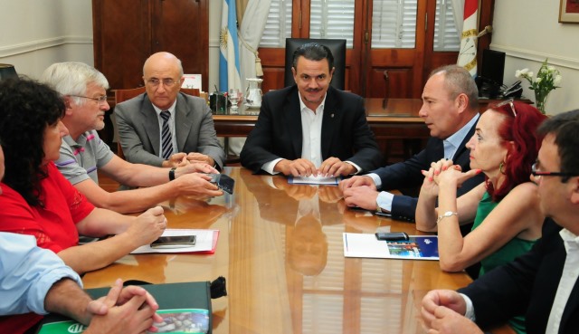 Del encuentro, realizado por el término de más de dos horas, en el Ministerio de Gobierno y Reforma del Estado, participaron, además, los secretarios de Hacienda, Carlos Fernández; y de Recursos Humanos y la Función Pública, Juan Carlos Pucciareli; y el subsecretario de Recursos Humanos, Guillermo Coulter.