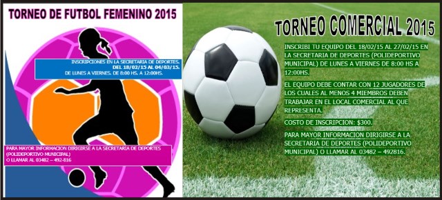 LAS TOSCAS – La Secretaría de Deportes de la municipalidad de Las Toscas, a cargo del prof. Sebastián Broggi, invita a participar de dos eventos deportivos: Fútbol femenino y fútbol masculino comercial.