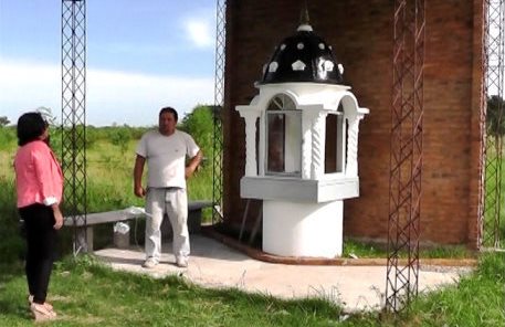 “La gente preguntaba para qué era esa base que estábamos construyendo, bueno ahora saben que es para sostener la réplica de la Basílica de Itatí que la compramos en Corrientes y que fue pagada con los primeros sueldos que mi hija cobró”, aclaró el devoto.