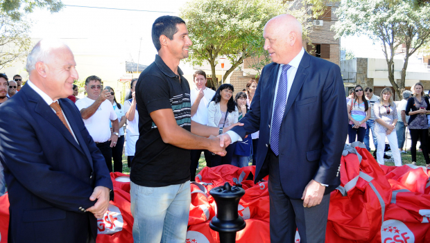En el acto, que se realizó en la plaza 9 de Julio de Reconquista, acompañaron al gobernador, el intendente local, Jacinto Speranza; las ministras de Educación, Claudia Balagué; de Desarrollo Social, Mónica Bifarello; y de Innovación y Cultura, María de los Ángeles González; los senadores Miguel Lifschitz y Orfilio Marcón; y el secretario de Medio Ambiente, César Mackler. También estaban presentes intendentes y presidentes comunales que recibieron los juegos de ajedrez.