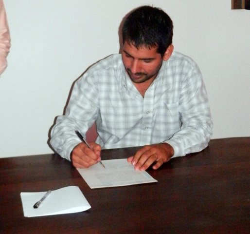 Además estuvo presente el vendedor del terreno junto a la escribana actuante que certificó los documentos y los cheques que se entregaron en concepto de pago por el lote en cuestión.