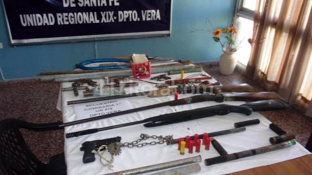 Dos personas mayores de edad fueron detenidas y un menor de edad fue aprehendido en el marco de un megaoperativo policial realizado realizado ayer en la ciudad de Vera. Además, se secuestraron tres armas de fuego; armas de fabricación casera (denominadas tumberas) y elementos para su construcción; cadenas con piñones y candados que se utilizan para agredir; una réplica de pistola; y cartuchos. Las tareas policiales fueron llevadas a cabo en el marco de la investigación que desarrolla el fiscal del MPA Gustavo Latorre por los incidentes ocurridos el pasado domingo en el club Huracán de Vera.