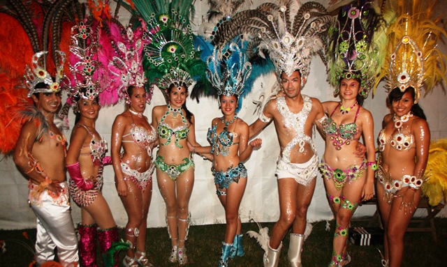 – Chupete sin hilo, batucada y comparsa Ara Sunu, con su candidata a reina, Yamila Yaccuzzi y su gotita Valentina Yaccuzzi.