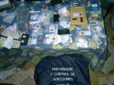 De la requisa realizada en el interior de la vivienda lograron el hallazgo y posterior secuestro de: un “pan” o “ladrillo” conteniendo marihuana junto a 8 envoltorios de nylon con idéntica sustancia vegetal, 16 tubos eppendorf resguardando cocaína, como así también, un rallador metálico con vestigios de marihuana, una bandeja de aluminio con vestigios de marihuana, una linterna- picana, una balanza de precisión, dinero en efectivo en la suma de 885 pesos, 2 teléfonos celulares, una bolsa con unos 100 gramos de una sustancia en polvo para el fraccionamiento, un cuaderno con anotaciones varias, dos pen drives, una billetera y demás elementos de interés.