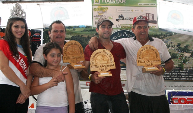 4° premio: Quarin Jorge; Corgniali Alberto; Pezz Nelson, de Villa Ocampo, con 9 especies y 14 piezas, con un resultado de 970 puntos. Peña «toro viejo».