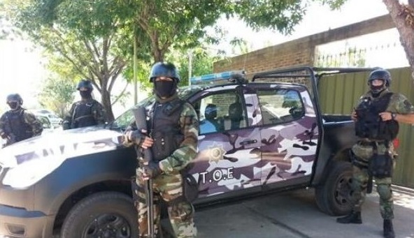 RECONQUISTA – Más de 10 allanamientos simultáneos se realizan desde antes del amanecer de este martes 21 de abril en varios barrios de Reconquista, con la intervención de unos 80 policías, entre ellos refuerzos que llegaron desde Vera.Todos los policías estuvieron bajo la dirección del Fiscal Aldo Gerosa que dio la orden de secuestrar armas y otros elementos de uso prohibido que habitualmente utilizan los violentos para amedrentar y en los enfrentamientos entre bandas; y trasladar al tenedor para ser identificado.