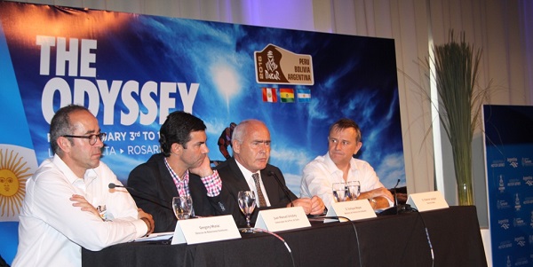 INTERNACIONALES – El ministro de Turismo de la Nación, Enrique Meyer, encabezó el anuncio oficial del Rally Dakar Perú, Bolivia, Argentina 2016. La competencia en Argentina pasará por Jujuy, Salta, Belén, La Rioja, San Juan, Villa Carlos Paz y finalizará en Rosario.El ministro de Turismo y presidente del Instituto Nacional de Promoción Turística, Enrique Meyer, junto al gobernador de Salta, Juan Manuel Urtubey y el director del Dakar, Etienne Lavigne, encabezaron el anuncio oficial de la 38ª Edición del Rally Dakar Perú-Bolivia-Argentina 2016, que se iniciará el 3 de enero próximo desde la Lima, Perú, luego transitará por Bolivia y cruzará hacia Argentina por Jujuy para llegar el 10 a la provincia de Salta, donde será el día el descanso, luego pasará por Belén, La Rioja, San Juan, Villa Carlos Paz y finalizará el 16 de enero en la ciudad de Rosario.