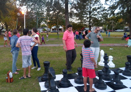 VILLA OCAMPO – El Programa “Vínculos” organizó una jornada recreativa y solidaria en la Plaza “Ocampo Samanés” del Barrio Sur, donde las familias pudieron disfrutar de una tarde distinta con música y entretenimientos.Los chicos del barrio pintaron los arcos de fútbol y los juegos de la plaza; se instaló el ajedrez gigante, que concitó un gran interés de los presentes; se realizaron diversos juegos y se pintaron dibujos en las veredas.