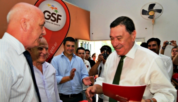 EN TACUARENDÍ – El gobernador Antonio Bonfatti, al entregar 68 escrituras a vecinos de Tacuarendí, también, en el mismo acto, hizo entrega de aportes a los municipios de Las Toscas y Villa Ocampo, como así también a una institución de Florencia.