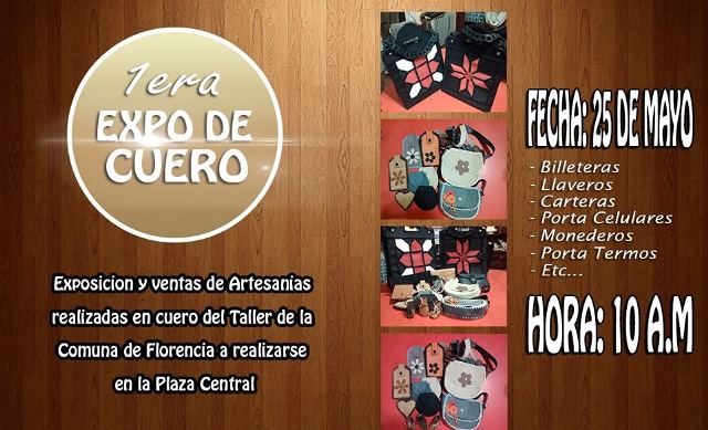 Habrá exposiciones y ventas de artesanías realizadas en cuero del Taller de la comuna de Florencia.