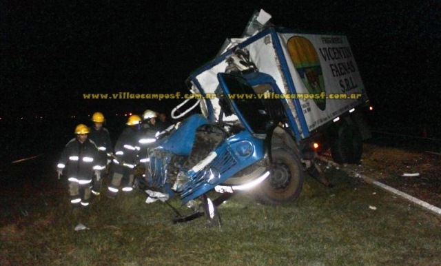 Un viejo camión Chevrolet con acoplado cargado con soja se dirigía hacia el sur; en esos momentos había bancos de niebla en distintos tramos de la ruta; en el mismo sentido circulaba un camión frigorífico de la firma ocampense VICENTIN FAENAS, cuando por causas que se tratan de establecer, este chocó de atrás al acoplado del camión.