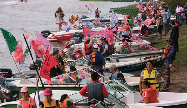 VILLA OCAMPO – 3° CONCURSO DE PESCA – Este domingo, en el camping «Don Avelino» del club de caza y pesca El Irupé, 96 embarcaciones vestidas de rosado, participaron del evento más grande y lindo de la provincia sobre el agua.