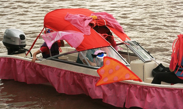 Fueron 96 lanchas que, todas, teniendo algo rosado, cursaron las aguas del paranasito en busca de las piezas que la pondrían en el podio del escenario montado debajo de la guardería de lanchas, muy bien acondicionado.