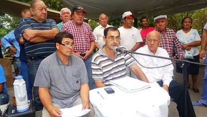VILLA OCAMPO – EN CONFERENCIA DE PRENSA – El grupo de trabajadores de la ex quiebra de Welbers, que se manifiesta en plaza Belgrano de la ciudad de Villa Ocampo, con carteles de agravios a personas de la ciudad, dio a conocer una serie de documentación relacionada a la Destilería.