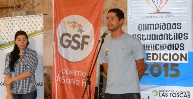 Por su parte, y en representación del Intendente del Gobierno de la Ciudad el Dr. Leandro Chamorro, hizo uso de la palabra el Secretario de Gobierno y Coordinación Téc. Iván Sánchez quien dijo: “Quiero transmitirles el saludo del Dr. Leandro Chamorro, quien en esta gestión viene impulsando fuertemente el Deporte sabiendo que es un ejercicio no sólo físico sino también ciudadano que hace a la convivencia en especial de nuestros jóvenes y niños. En este caso trabajando con el Gobierno Provincial para lo que es esta Olimpíada Santafesina, y coordinando en lo local con lo que son las Olimpíadas Estudiantiles de Nuestra Ciudad, en este año con su Segunda Edición, que el año pasado tuvo como ganadora a la Escuela Técnica y que este año les otorga puntos a partir de lo que vayan cosechando también en esta Olimpíada Santafesina».