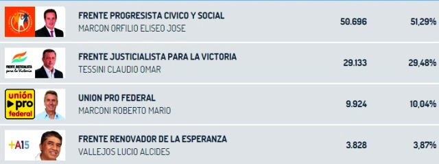 A SENADOR – El actual senador provincial, Orfilio Marcón, ganó con el 51,9%, contra el 29,48% de Claudio Tessini, con cómputos de 50.696 votos de Marcón y de 29.133 votos de Tessini. Tambien, en el departamento General Obligado, ganó Bonfatti en diputados y Lifschitz a gobernador.Sacó casi la misma cantidad de votos en las PASO, siendo para Orfilio Marcón, una constante de ganar y ganar, tanto cuando era intendente, como ahora a Senador.