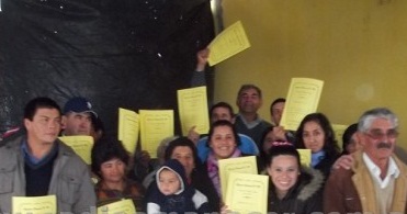 La ceremonia de entrega formal de los títulos de propiedad a los beneficiarios tuvo lugar en la tarde del martes, y contó con la presencia del Obispo Diocesano Angel José Macín, de la donante del terreno Raquel Capózzolo y de representantes de CARITAS, además de los vecinos.