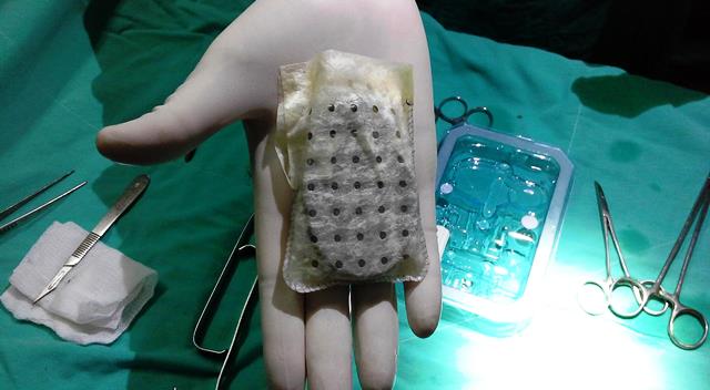 El procedimiento se efectuó en una mujer de 59 años portadora de miocardiopatía chagásica más episodios de taquicardia ventricular, razón por la cual se le indicó un cardiodefibrilador y al ser estos dispositivos “de gran tamaño, una de las complicaciones que pueden presentarse, es la escara del bolsillo propio del paciente”, razón por la cual, “al proteger al mismo con un bolsillo ‘extra’ evita al menos esta principal complicación”.
