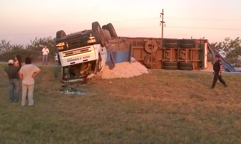 Por causas que se tratan de establecer el chofer del el Fiat Iveco de la empresa  Don Enrique de Reconquista perdió el control del camión y volcó. El mismo transportaba semillas de algodón y la carga quedo desparramada sobre la cinta asfáltica.