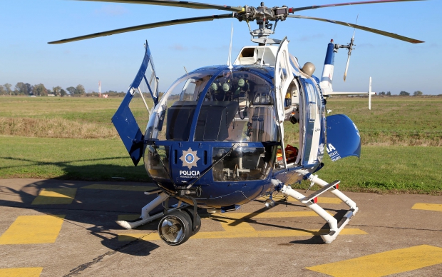 El gobernador Antonio Bonfatti presentó uno de los dos helicópteros que el Estado santafesino adquirió para la Policía de la Provincia.