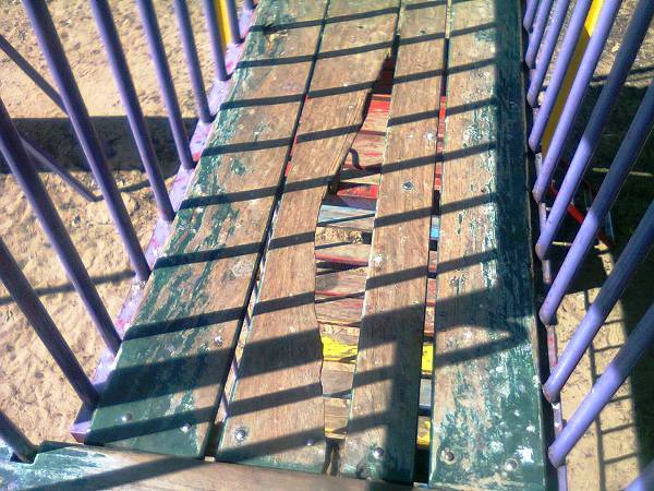 Una tabla rota en uno de los juegos de la plaza central de Reconquista causan una importante lesión en una nena.
