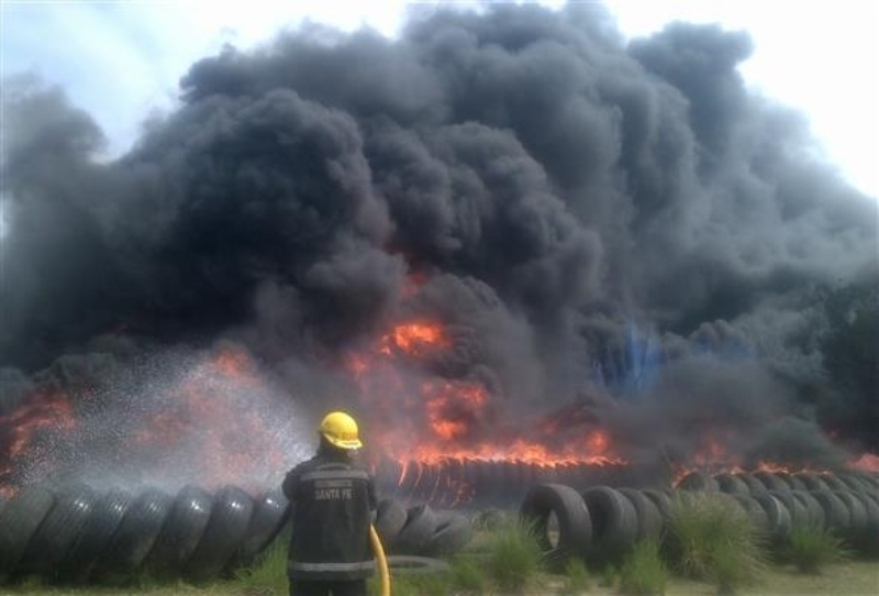 Impactante incendio de unos 600 neumáticos en una casa-quinta en las afueras de la Ciudad de Reconquista sucedió ayer en horas del mediodía, donde los bomberos trabajaron durante varias horas.