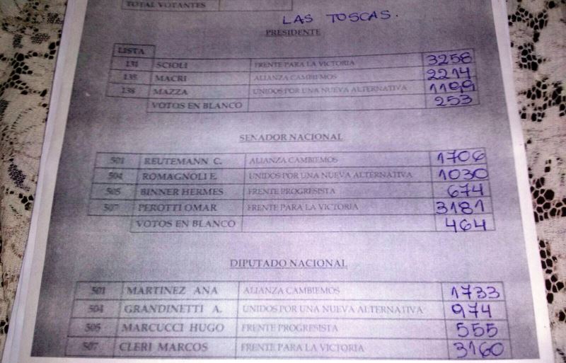 En la ciudad de Las Toscas, ha ganado el FPV en todas las categorías.