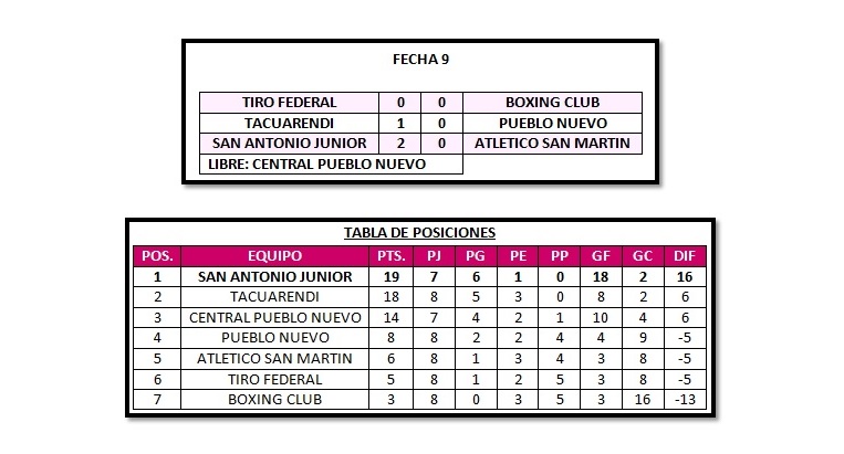 Deportes Las Toscas: Liga de fútbol femenino 4 noviembre, 2015 Compartir en Facebook Compartir en Twitter tweet El día sábado 31 de octubre de 2015 se realizó la 9º Fecha de la Liga de Futbol Femenino en las instalaciones del Club Tiro Federal Argentino Las Toscas, la jornada inició a las 15:00hs. Los resultados fueron: resultados y tabla de posiciones