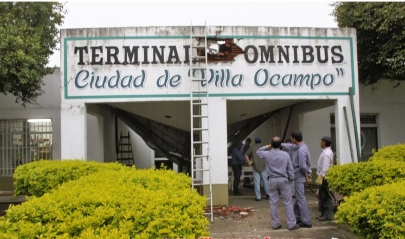 Fuerte tormenta en la noche de este lunes en Villa Ocampo, cayendo el techo del hall de la Terminal de ómnibus y colapsando el sistema cloacal.