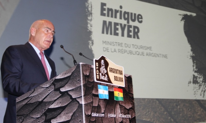 El ministro de Turismo de la Nación, Enrique Meyer, encabezó, en París, el lanzamiento oficial del Rally Dakar Argentina – Bolivia 2016. La competencia comenzará en Tecnópolis, transitará por Bolivia, tendrá día de descanso en Salta y finalizará en Rosario.