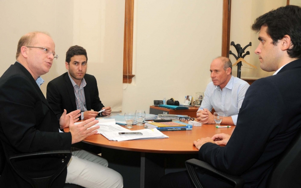 El ministro de la Producción de la Provincia, Luis Contigiani, acompañado por el secretario de Industria, Emiliano Pietropaolo, mantuvo en Buenos Aires un encuentro con los subsecretarios de Coordinación Política, Hugo Rossi, y de Desarrollo Territorial, Felipe Crespo, ambos del Ministerio de Agricultura de la Nación, con el fin de peticionar asistencia para ganaderos de la provincia de Santa Fe afectados por las inundaciones.