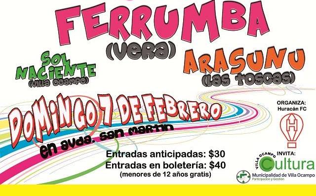 Actuarán las comparsas: Ferrumbá (Vera), Arasunú (Las Toscas) y Sol Naciente (Villa Ocampo).