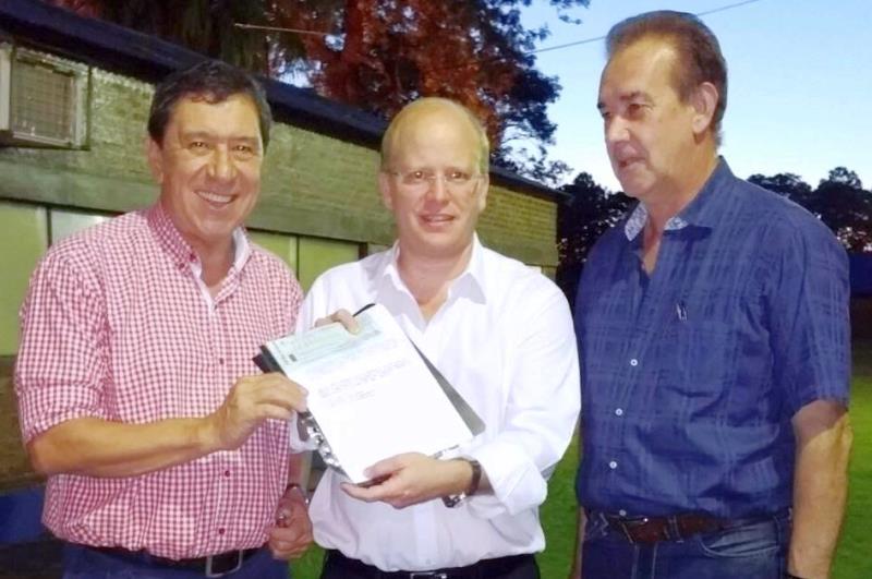 Acompañado por el senador del departamento General Obligado, el ministro de Producción, Luis Contigiani entregó un aporte dinerario de 300.000 pesos al jefe municipal Leandro Chamorro, destinado para finalización de la obra de recuperación y puesta en valor del histórico Mirador de Las Toscas.