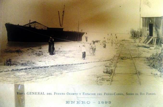 En una quedó registrado el fuerte y aserradero “Carlota”, que estaba ubicado en el paraje Villa Adela; mientras que en la otra se observan la vías y estación del ferrocarril del Puerto Ocampo, con una embarcación amarrada a orillas del Río Paraná y algunos pobladores del lugar.