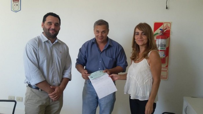 Intendente de Malabrigo recibiendo el cheque