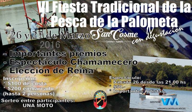 Habrá importantes premios, como ser trofeos y equipos de pesca y camping, más la posibilidad de disfrutar de una agradable jornada en familia, como oferta para esta Semana Santa. Las inscripciones están abiertas en la Oficina de Turismo de San Cosme de Lunes a viernes de 08.00 a 13.00 hs y hasta el día 26 en el Complejo Totora. El costo para participar es de $100, de costa y $200 embarcados.