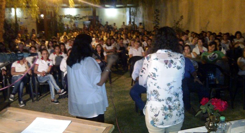 Ante un colmado patio-jardín de la Casa de la Cultura “Raúl Scalabrini Ortiz”, auditorio especialmente compuesto por alumnos del nivel medio y terciario, como así también de referentes de instituciones locales que trabajan en la temática, las funcionarias abordaron los distintos aspectos de violencia de género contemplados en la Ley Nacional 26.485, a la cual Santa Fe adhirió a través de la Ley Provincial 13.348; tipos y modalidades, características puntuales, violencia intrafamiliar (que es la más común), violencia mediática, violencia laboral, ciberacoso (situación cada vez más preocupante), identificación, abordaje, empoderamiento de las víctimas, entre otros temas.