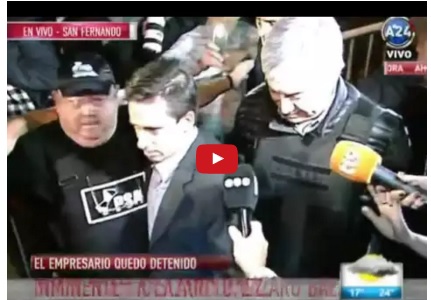 Momento en que trasladan a Lázaro Báez a una dependencia para ser indagado por el juez Casanello el próximo jueves.
