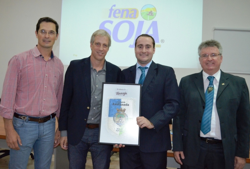 El Intendente Dionisio Scarpin junto a representantes del Consejo Consultivo permanente de Fenasoja (Brasil), de la Cámara de Comercio Exterior de Reconquista y de instituciones locales encabezaron la presentación oficial en Avellaneda, de la 21ª edición de la Feria Nacional de la Soja que tendrá lugar del 29 de abril al 08 de mayo en Santa Rosa, Brasil.