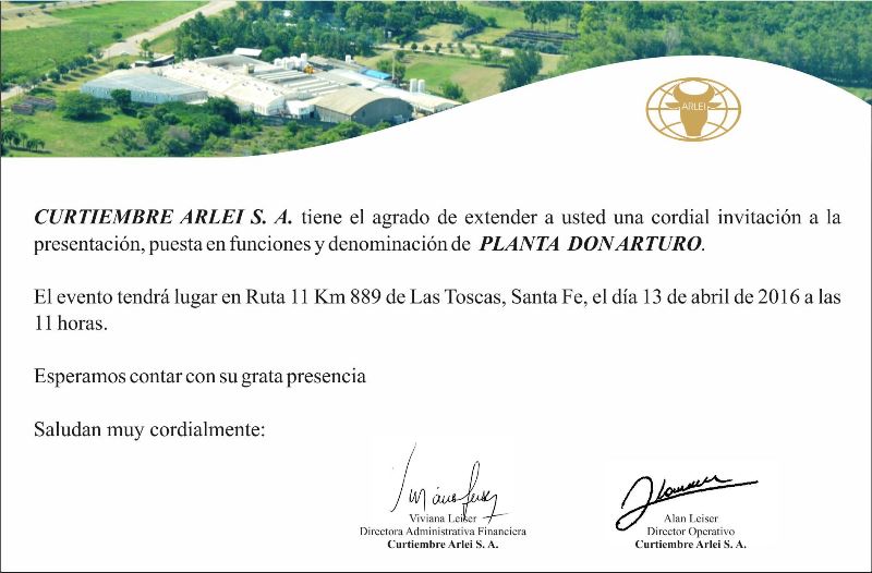 La planta, la cual se llamara «Don Arturo», en conmemoración a quien fuese en vida el fundador de la firma ARLEI, Arturo Leiser, ha tomado este gran desafío como una empresa familiar y así se prestan a llevarla a cabo, por lo que seguramente sera un gran éxito para esta nueva etapa en dicha planta fabril.